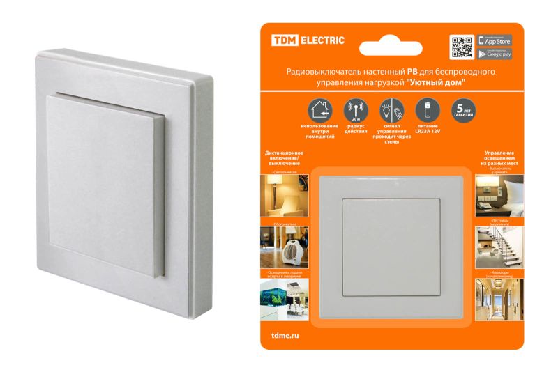 Радиовыключатель настенный (1 клав.) для беспроводного управления нагрузкой "Уютный дом" РВ1 TDM