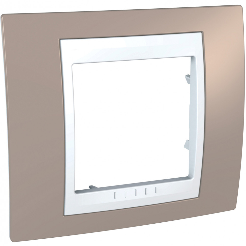 Рамка Schneider Electric UNICA ХАМЕЛЕОН (коричневый) одинарная с белой декоративной вставкой.- Позволяет гармонично вписать электроустановочное изделие в интерьер помещения и создать свой неповторимый дизайн.