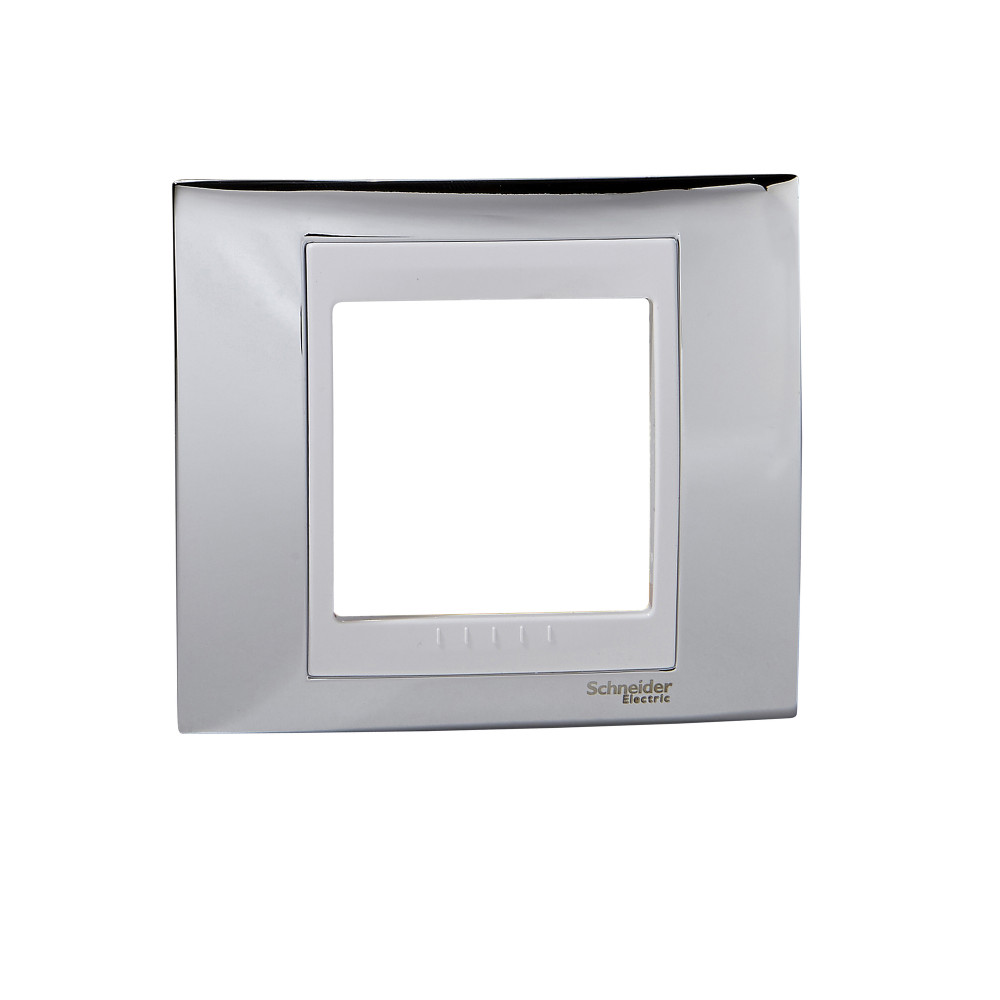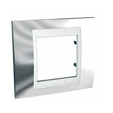 Рамка Schneider Electric UNICA ХАМЕЛЕОН (серебро) одинарная с белой декоративной вставкой.- Позволяет гармонично вписать электроустановочное изделие в интерьер помещения и создать свой неповторимый дизайн.