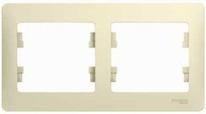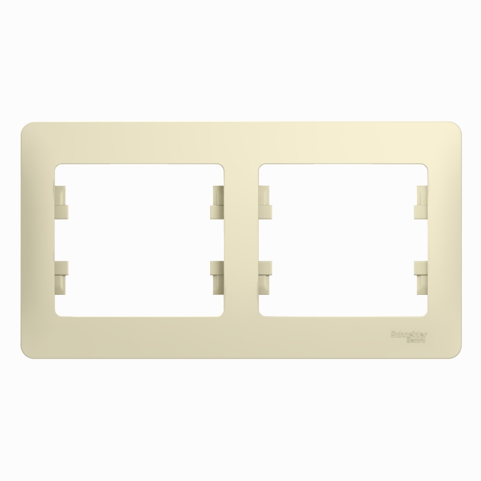 Рамка Systeme Electric (ранее Schneider Electric) серии Glossa (цвет бежевый) двухместная. Устанавливается в горизонтальном положении. Выполнена из материала PС+ASA, стойкого к УФ-излучению и появлению царапин. Позволяет гармонично вписать электроустановочное изделие в интерьер помещения.