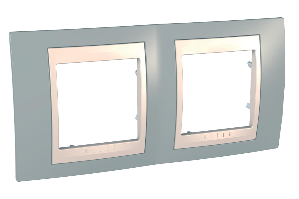Рамка Schneider Electric UNICA ХАМЕЛЕОН (серый) двухместная с бежевой декоративной вставкой.- Рамка для установки в горизонтальном положении.
