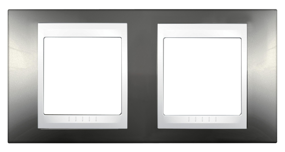 Рамка Schneider Electric UNICA ХАМЕЛЕОН (шампань) двухместная с белой декоративной вставкой.- Устанавливается в горизонтальном положении.