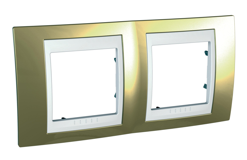 Рамка Schneider Electric UNICA ХАМЕЛЕОН (золото) двухместная с белой декоративной вставкой.- Рамка для установки в горизонтальном положении.