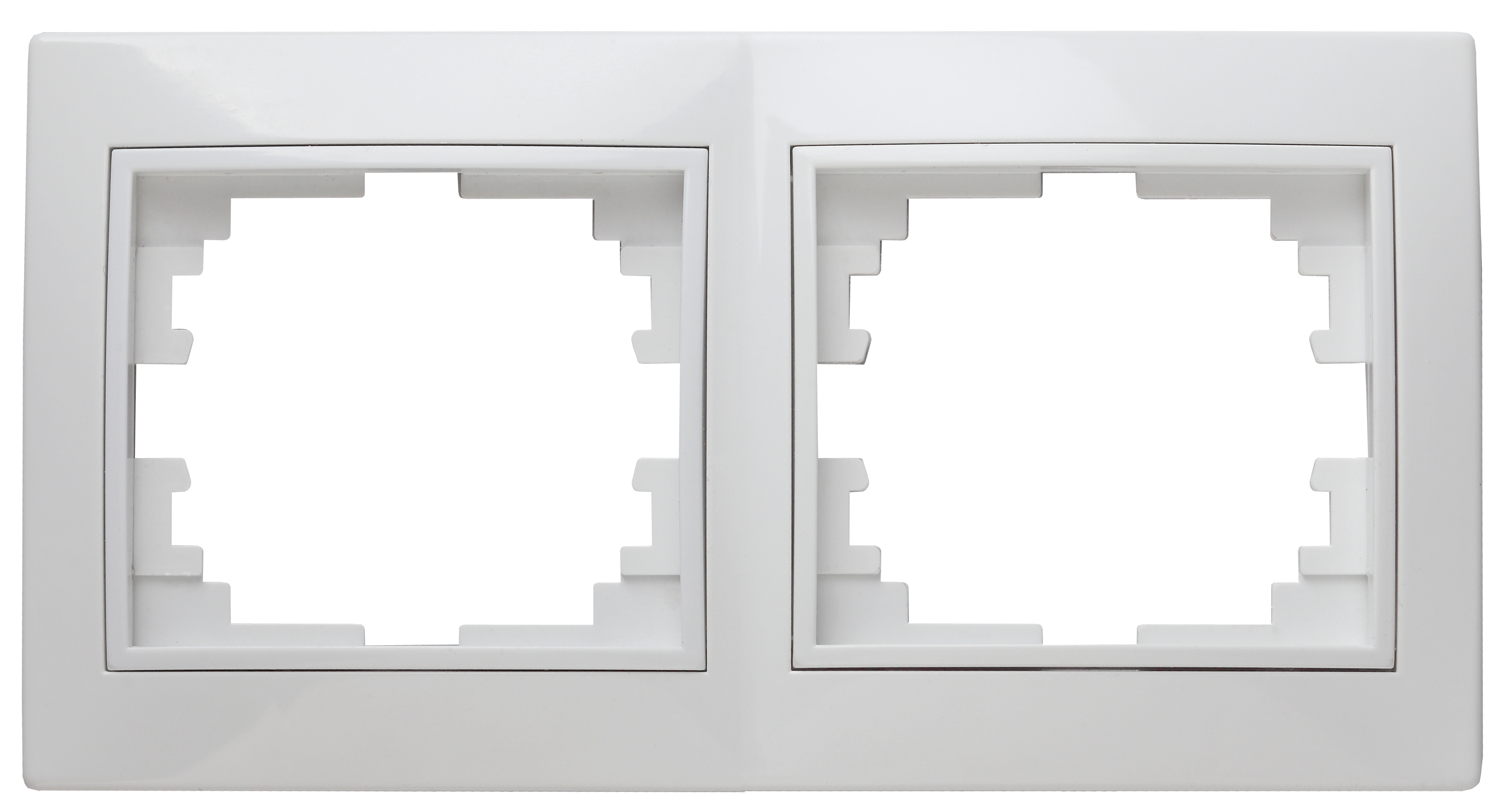 Рамка выполнена из термопласта. Устанавливается на 2 устройства серии Intro Plano, смонтированные в два горизонтально установленных подрозетника.