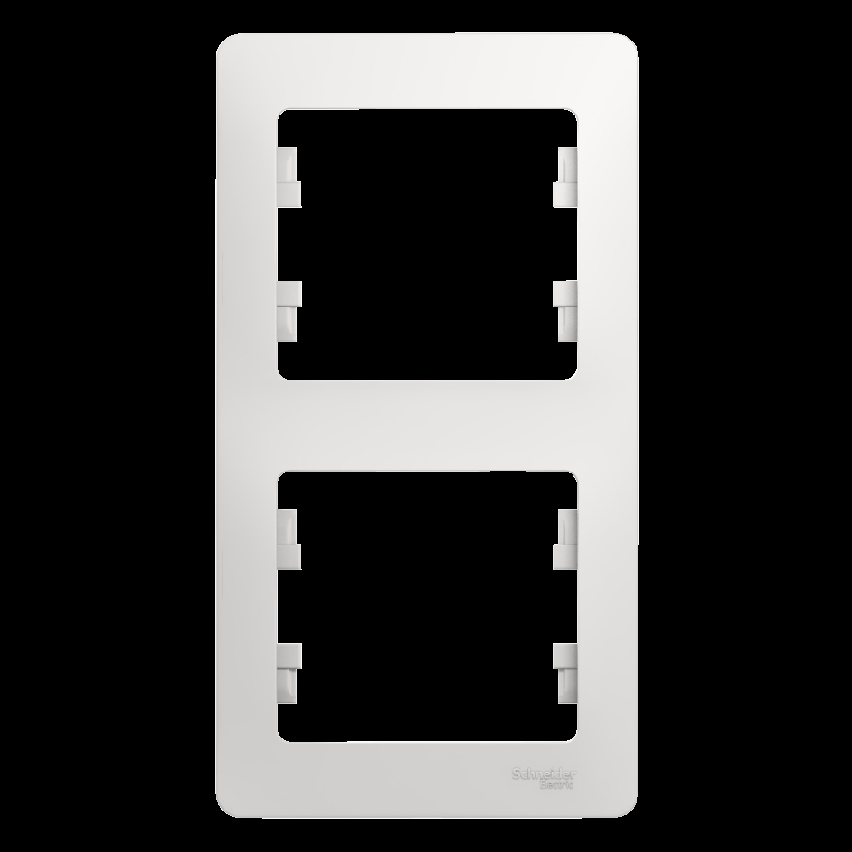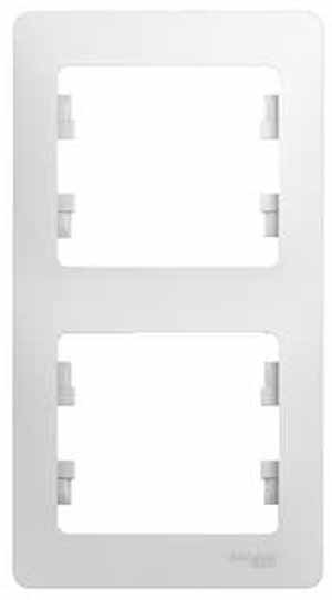 Рамка Systeme Electric (ранее Schneider Electric) серии Glossa (цвет белый) двухместная. Устанавливается в вертикальном положении. Выполнена из материала PС+ASA, стойкого к УФ-излучению и появлению царапин. Позволяет гармонично вписать электроустановочное изделие в интерьер помещения.
