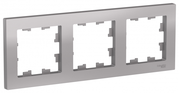 Рамка Systeme Electric (ранее Schneider Electric) серии AtlasDesign в цвете алюминий трёхместная. Устанавливается в вертикальном и горизонтальном положениях. Лицевые детали из качественного ABS-пластика, устойчивого к царапинам и УФ-излучению. Позволяет гармонично вписать электроустановочное изделие в интерьер помещения. (ранее Schneider Electric ЭУИ UNICA NEW, ЭУИ ODACE NU200630, S52P806J, S52P806K, S53P806, S53P806J)