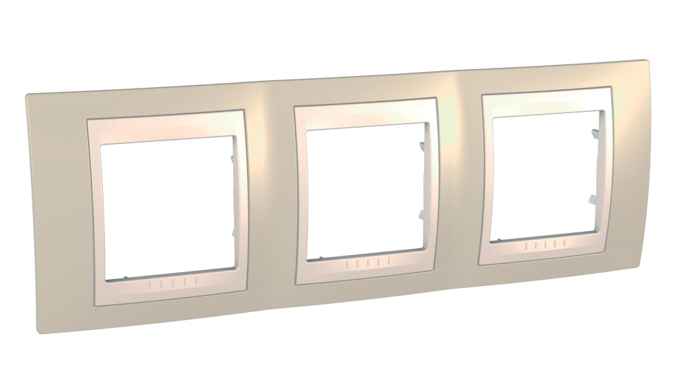 Рамка Schneider Electric UNICA ХАМЕЛЕОН (песчаный) трёхместная с бежевой декоративной вставкой.- Рамка для установки в горизонтальном положении.