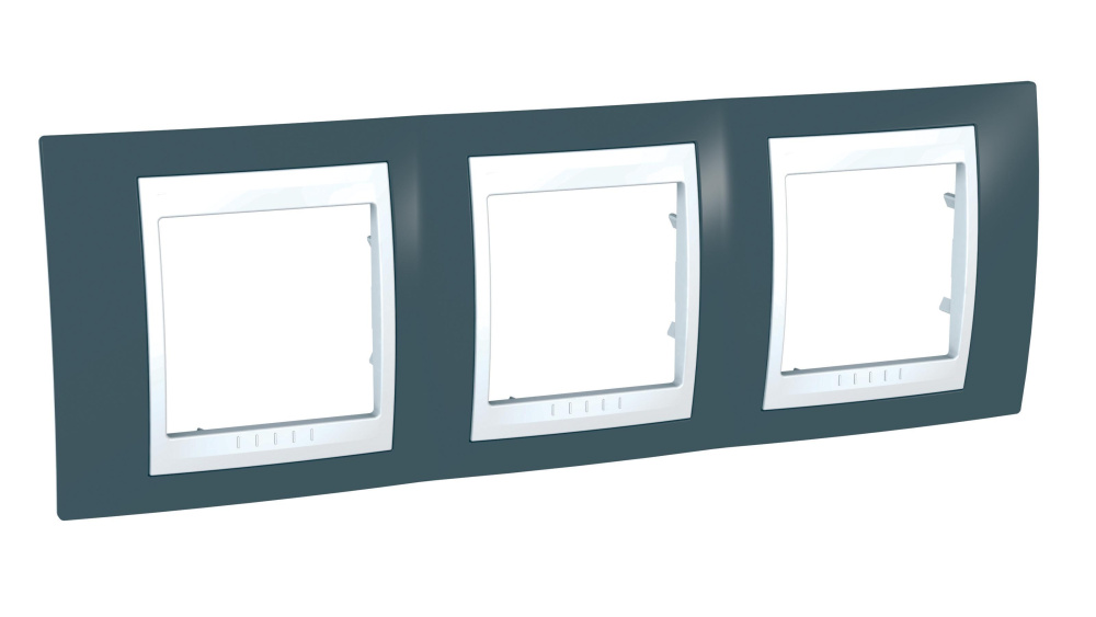 Рамка Schneider Electric UNICA ХАМЕЛЕОН (серо-зелёный) трёхместная с белой декоративной вставкой.- Рамка для установки в горизонтальном положении.