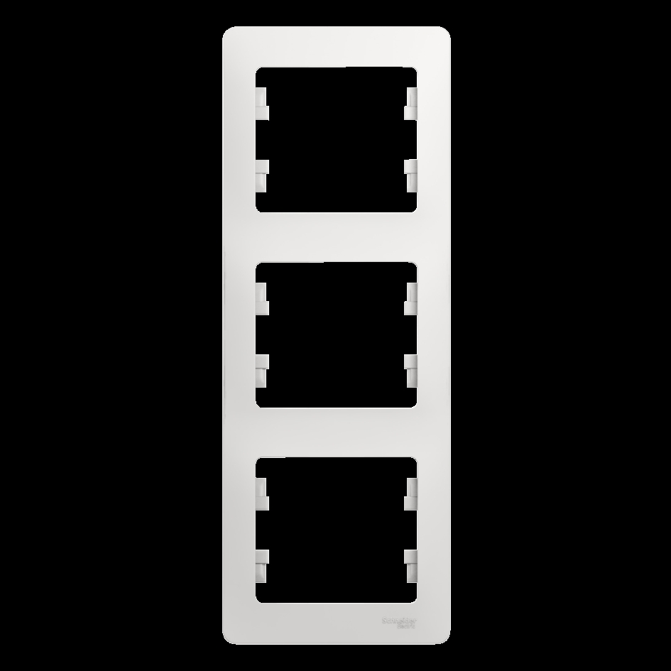 Рамка Systeme Electric (ранее Schneider Electric) серии Glossa (цвет белый) трёхместная. Устанавливается в вертикальном положении. Выполнена из материала PС+ASA, стойкого к УФ-излучению и появлению царапин. Позволяет гармонично вписать электроустановочное изделие в интерьер помещения.