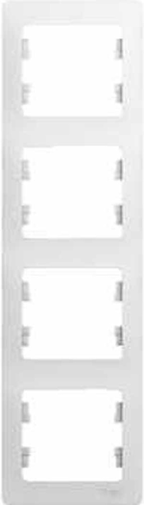 Рамка Systeme Electric (ранее Schneider Electric) серии Glossa (цвет белый) четырёхместная. Устанавливается в вертикальном положении. Выполнена из материала PС+ASA, стойкого к УФ-излучению и появлению царапин. Позволяет гармонично вписать электроустановочное изделие в интерьер помещения.