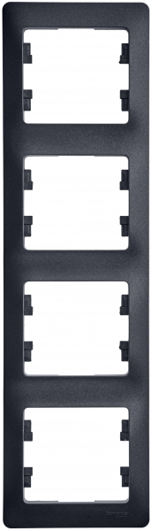 Рамка Systeme Electric (ранее Schneider Electric) серии Glossa (цвет антрацит) четырёхместная. Устанавливается в горизонтальном положении. Выполнена из материала PС+ASA, стойкого к УФ-излучению и появлению царапин. Позволяет гармонично вписать электроустановочное изделие в интерьер помещения. (ранее Schneider Electric ЭУИ UNICA NEW NU200854)
