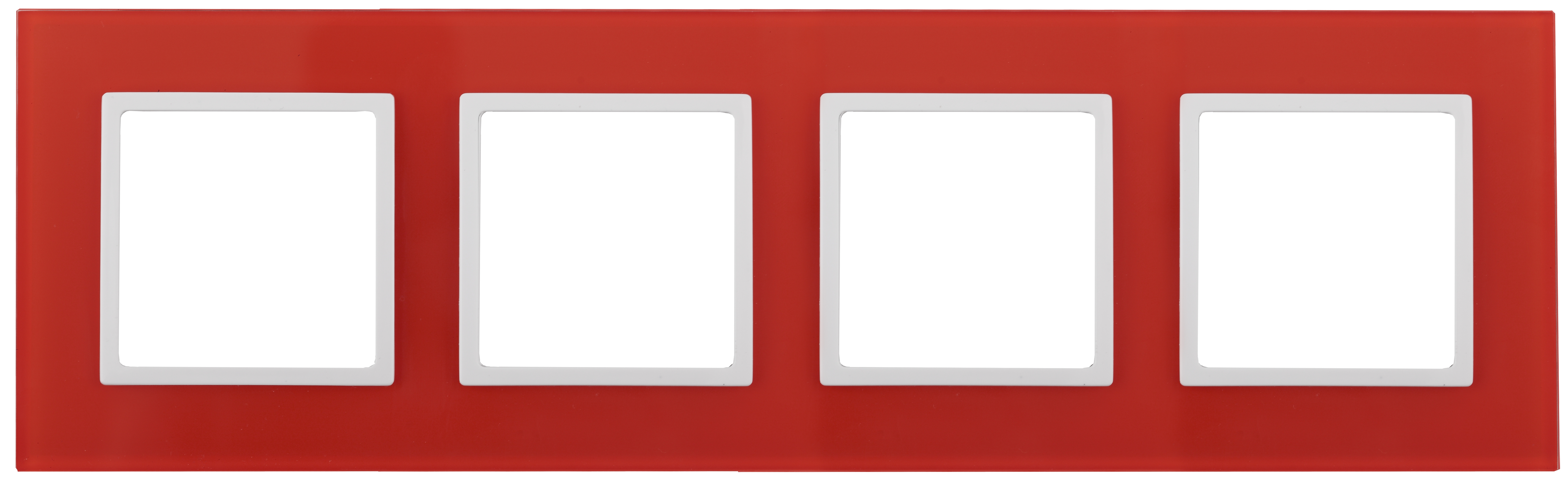 Рамка для выключателей и розеток 4-постовая серии Эра Elegance цвет красный 14-5104-23. Сделана из стекла. Используется только с механизмами серии Эра Elegance.
