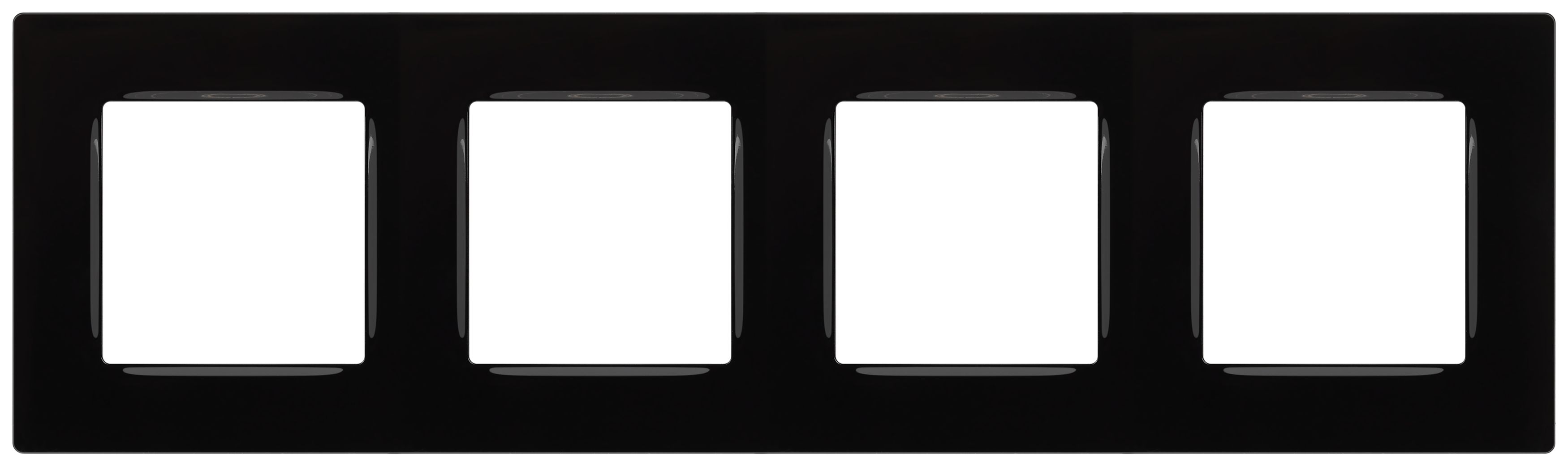 Рамка для розеток и выключателей ЭРА 12 12-5204-06 на 4 поста, Классик, цвет чёрный глянец. Обновленный дизайн. Рамка может быть установлена как горизонтально, так и вертикально. Размер 301х85х9мм.