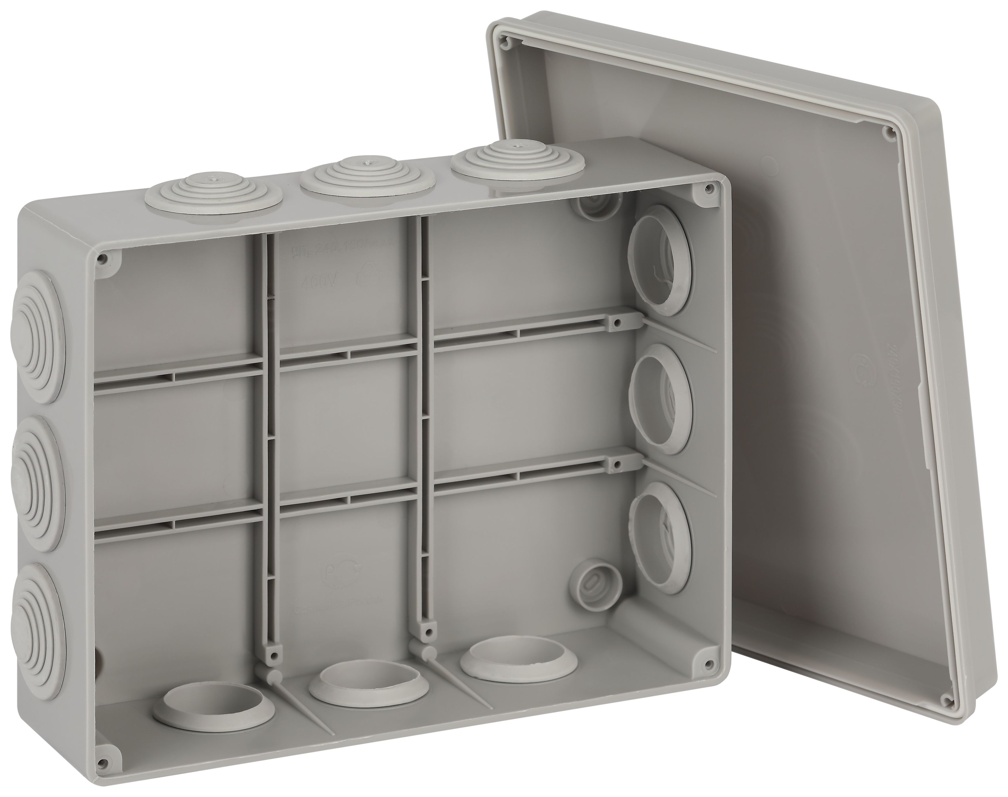 Распаячная коробка ЭРА KORv-240-190-90-12g ОП серая 240х190х90мм на винтах 12 гермовводов IP55