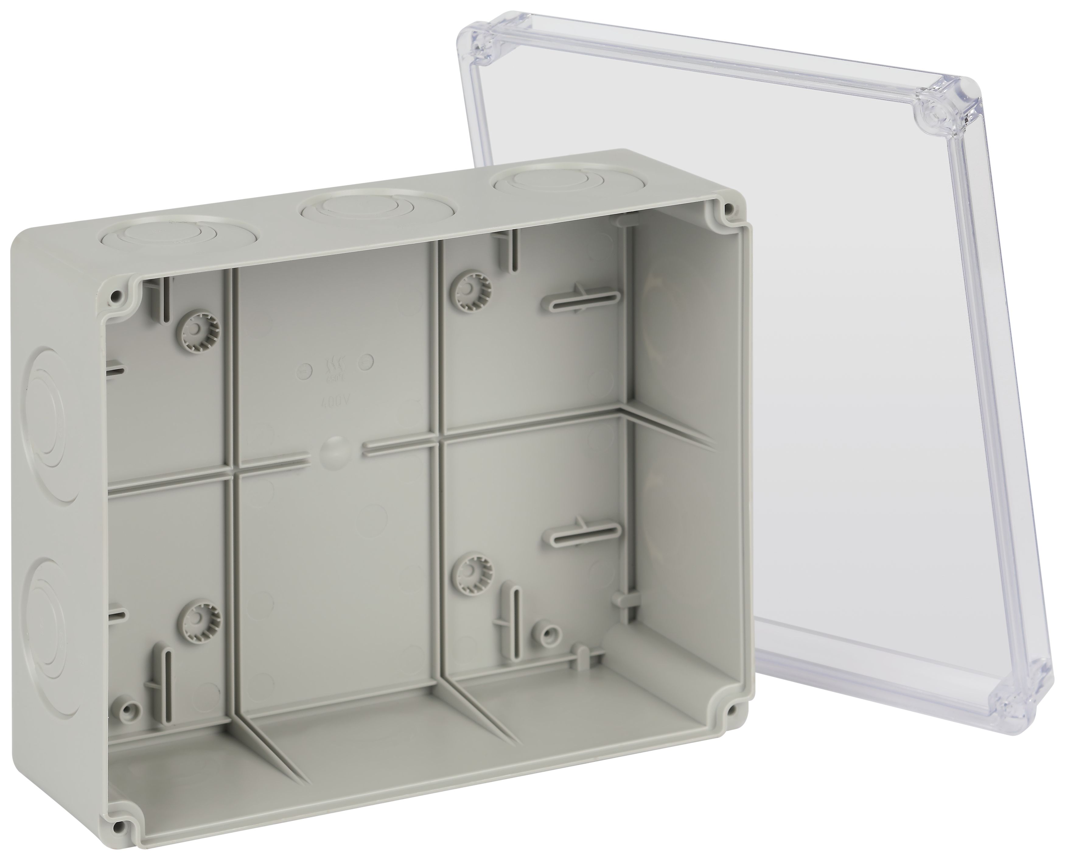 Распаячная коробка ЭРА KORvpk-240-195-90-44 ОП серая 240х195х90мм прозрачная крышка на винтах d25-3ш