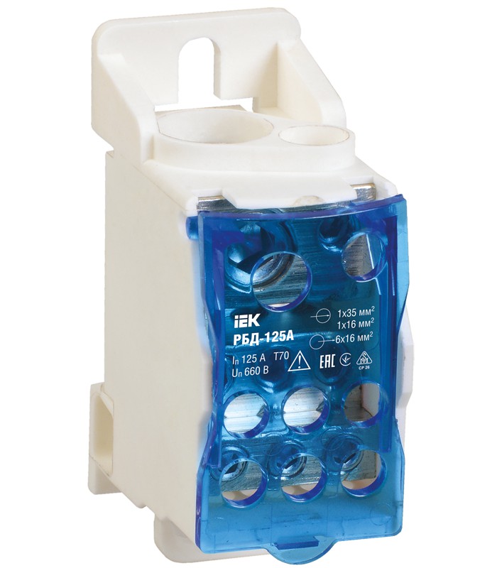 Распределительные блоки РБД предназначены для использования в качестве клеммного зажима при подключении к проводнику большего сечения нескольких проводников меньшего сечения, для создания упорядоченных систем распределения в шкафах, для организации главной заземляющей шины.Предназначены для монтажа на DIN-рейку или на монтажную панель как в силовых шкафах, так и в квартирных распределительных щитах, для работы в сетях с напряжением до 1000 В частоты 50 Гц при температуре окружающего воздуха от –40 до +70 С.