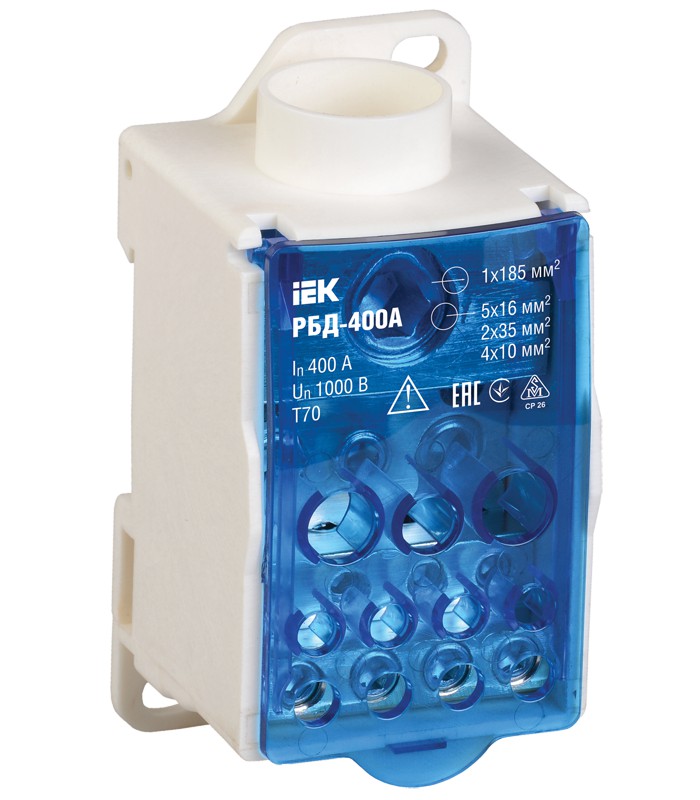 Распределительные блоки РБД предназначены для использования в качестве клеммного зажима при подключении к проводнику большего сечения нескольких проводников меньшего сечения, для создания упорядоченных систем распределения в шкафах, для организации главной заземляющей шины.Предназначены для монтажа на DIN-рейку или на монтажную панель как в силовых шкафах, так и в квартирных распределительных щитах, для работы в сетях с напряжением до 1000 В частоты 50 Гц при температуре окружающего воздуха от –40 до +70 С.