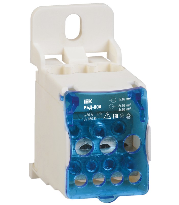 Распределительные блоки РБД предназначены для использования в качестве клеммного зажима при подключении к проводнику большего сечения нескольких проводников меньшего сечения, для создания упорядоченных систем распределения в шкафах, для организации главной заземляющей шины.Предназначены для монтажа на DIN-рейку или на монтажную панель как в силовых шкафах, так и в квартирных распределительных щитах, для работы в сетях с напряжением до 1000 В частоты 50 Гц при температуре окружающего воздуха от –40 до +70 С.