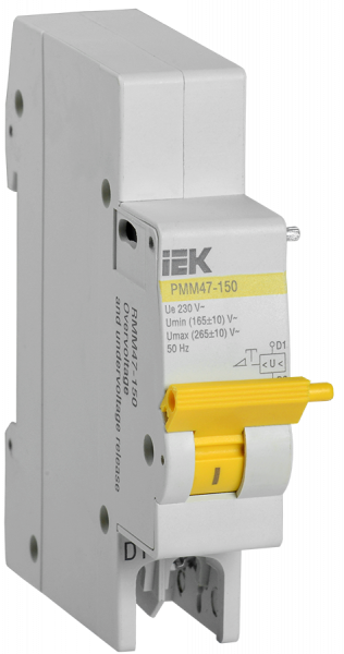 Расцепитель минимального/максимального напряжения РММ47-150 предназначен для отключения одно-, двух- или трехполюсного автоматического выключателя серии ВА47-150 при недопустимом снижении или повышении напряжения сети.