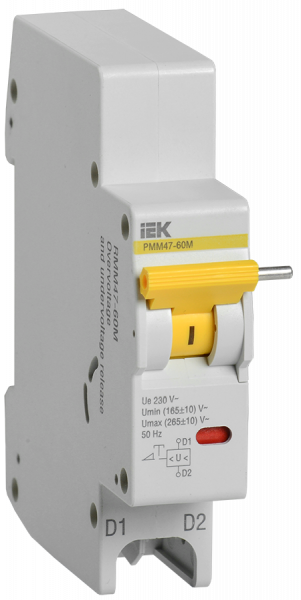 Расцепитель минимального/максимального напряжения РММ47-60М предназначен для отключения одно-, двух- или трехполюсного автоматического выключателя серии ВА47-60М при недопустимом снижении или повышении напряжения сети.