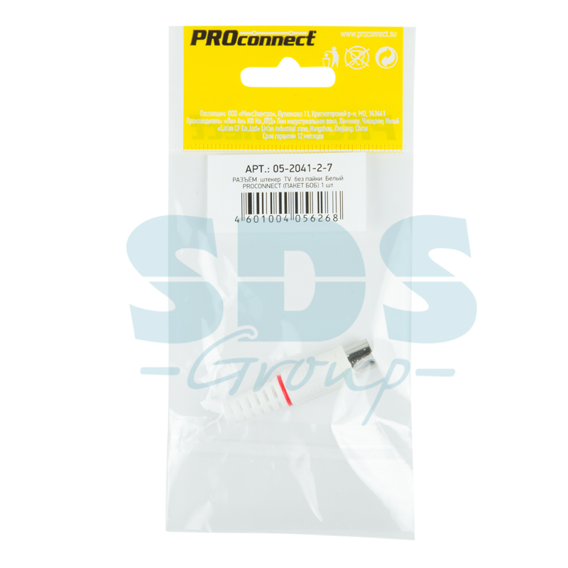 РАЗЪЁМ  штекер  TV  без пайки  Белый  PROCONNECT  предназначен для подключения эфирного, спутникового и кабельного телевидения с помощью радиочастотного кабеля. Такой разъем монтируется на телевизионный кабель и передает идущий по кабелю сигнал на ТВ устройства. Установка провода в разъеме производится с помощью винтового зажима, что значительно сэкономит время на монтаж. Корпус разъема и контакты изготовлены из никелированного металла, а колпачок из белой пластмассы. Колпачок имеет амортизатор кабеля (в народе именуемый "xвостом"), который позволяет кабелю гнуться только с безопасным радиусом изгиба. Простой монтаж и надёжное соединение, обеспечат защиту от помеx и внешниx воздействий.
