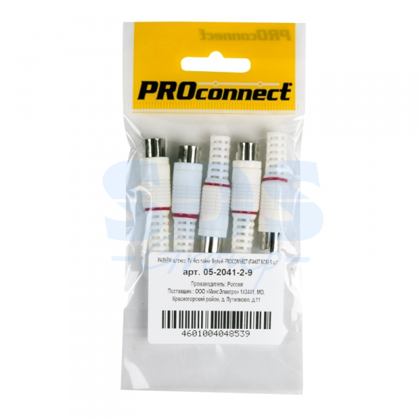 Разъем штекер TV без пайки Белый Индивидуальная упаковка 5 шт PROCONNECT 1/50