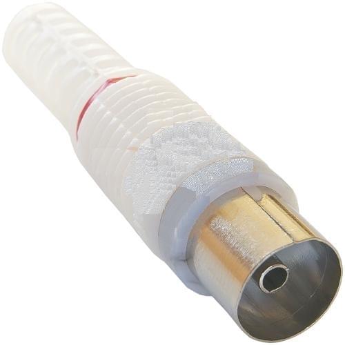 TV-разъем гнездо PROconnect используется при организации телевидения (спутникового, эфирного и кабельного) с помощью радиочастотного кабеля. Изделие устанавливается на телевизионный кабель и передает сигнал на ТВ-устройства.Корпус разъема и контакты изготовлены из никелированного цинка, а колпачок из белой и прочной пластмассы.
