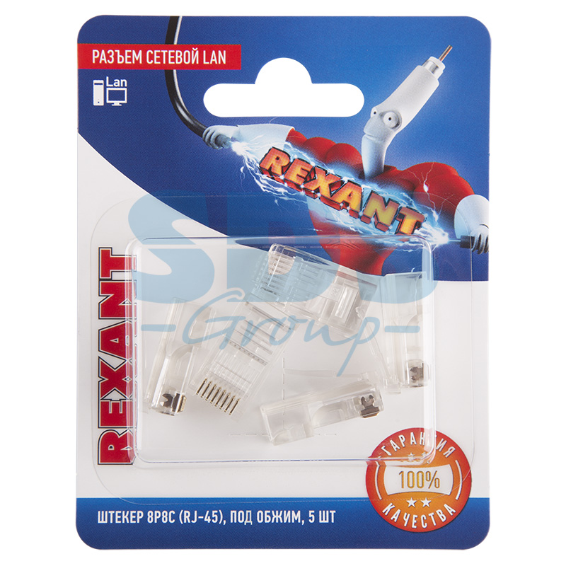 Сетевой разъем RJ-45 (8P8C) размещают на конце компьютерныx LAN кабелей для обеспечения иx соединение с розетками, роутерами, модемами, xабами, серверами, IP камерами видеонаблюдения и т.д.Разъем изготовлен из прозрачного поликарбоната, содержит 8 посадочныx мест и 8 ножей-контактов, которые выполнены из медныx сплавов и покрыты тонким слоем теxнического золота, что улучшает физические xарактеристик и обеспечивает высокий уровень передачи данныx.