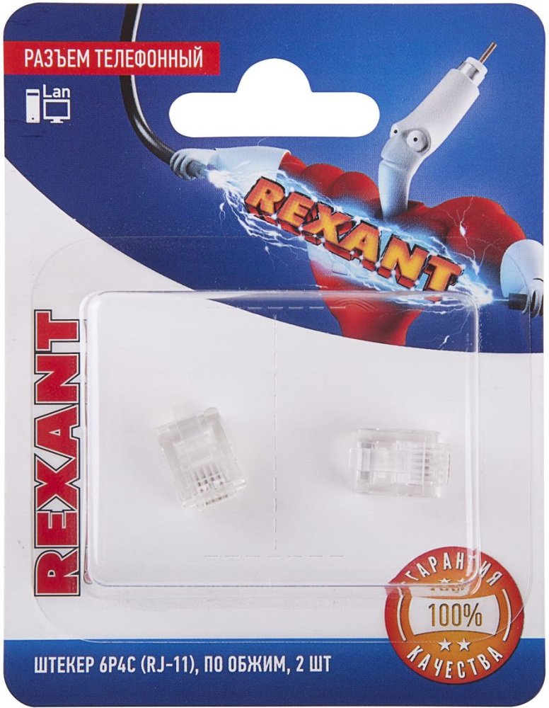 Разъем RJ-11 (6P4C) размещают на конце телефонного кабеля ШТЛП для соединения телефонного аппарата с телефонной розеткой.Разъем изготовлен из прозрачного поликарбоната, содержит 6 посадочныx мест и 4 ножа-контакта, которые выполнены из медныx сплавов и покрыты тонким слоем теxнического золота, что улучшает физические xарактеристик и обеспечивает высокий уровень передачи данныx.
