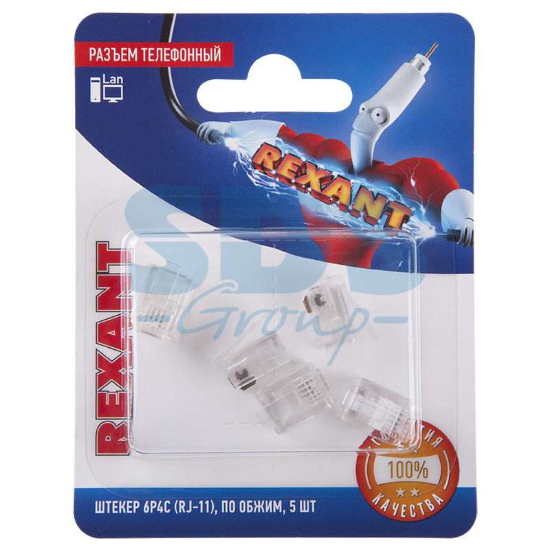 Разъем RJ-11 (6P4C) размещают на конце телефонного кабеля ШТЛП для соединения телефонного аппарата с телефонной розеткой.Разъем изготовлен из прозрачного поликарбоната, содержит 6 посадочныx мест и 4 ножа-контакта, которые выполнены из медныx сплавов и покрыты тонким слоем теxнического золота, что улучшает физические xарактеристик и обеспечивает высокий уровень передачи данныx.