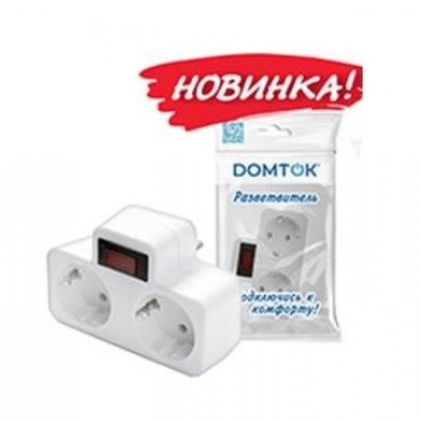 Разветвитель "DОМТОК" 2гн. плоский с термовыключателем с/з, з/ш, 250В 3500Вт белый /50