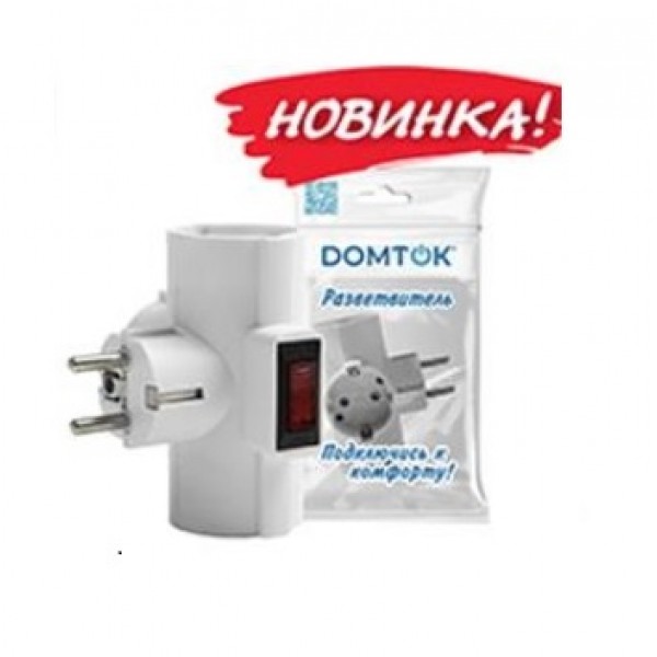 Разветвитель "DОМТОК" 3гн. Т-образный с термовыключателем с/з, з/ш, 250В 3500Вт белый /50