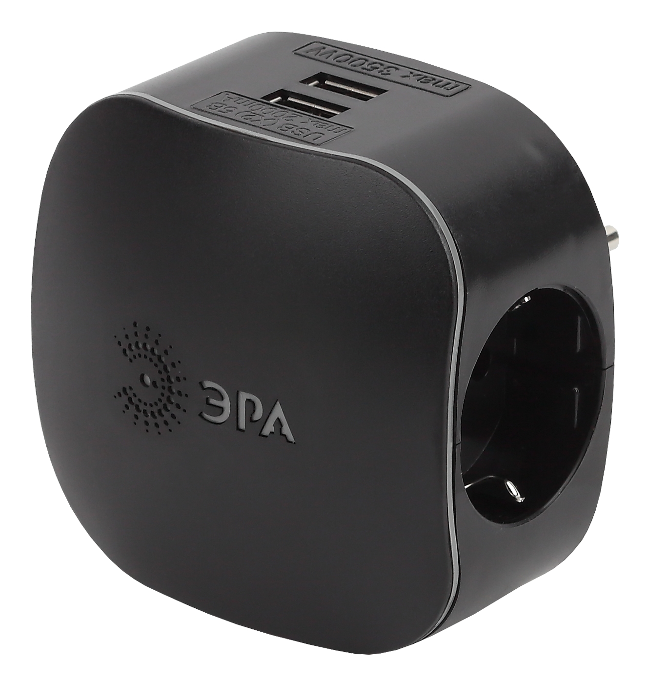 Тройник (адаптер) ЭРА с 3-мя розетками и 2-мя USB гнездами для зарядки портативных устройств. Идеален для зарядки мобильных телефонов и планшетов. Незаменим с собой в дороге. Особенно актуален когда в помещении мало источников подключения - можно из одной розетки сделать три и при этом ещё заряжать 2 устройства одновременно через USB. Максимальная мощность USB разъемов: 2100 мА. Разработан в России.