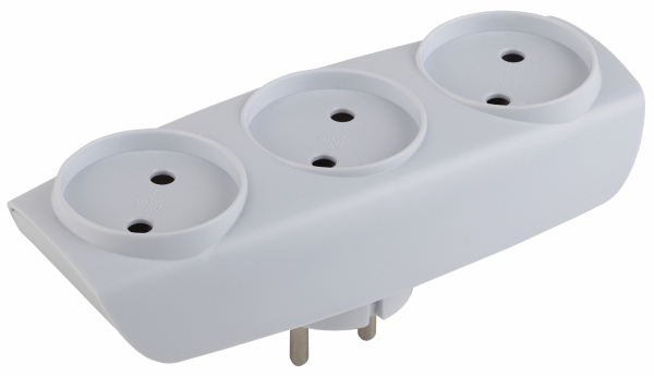 Разветвитель электрический Эра SP-3-W без заземления на 3 розетки. Если в Вашем доме недостаточно розеток, чтобы одновременно подключить несколько электроприборов, то тройник марки Эра станет Вашим надежным помощником. Электрический разветвитель рассчитан на максимальную мощность 16А/3500Вт. Корпус выполнен из ударопрочного и негорючего пластика (поликарбонат). Модель тройника на 16А позволяет подключить мощные бытовые приборы общей нагрузкой до 3500Вт. Не бойтесь включить чайник, обогреватель или микроволновку. Дизайн разработан в России командой Эра Style.