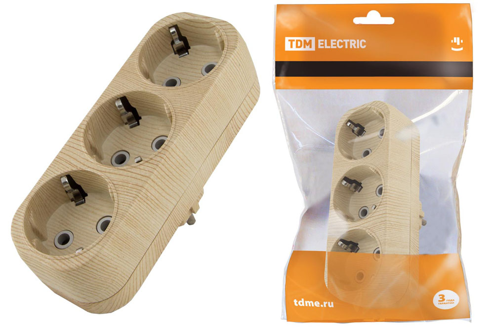 Разветвитель сетевой 3гн с/з сосна Эко TDM /10/50*