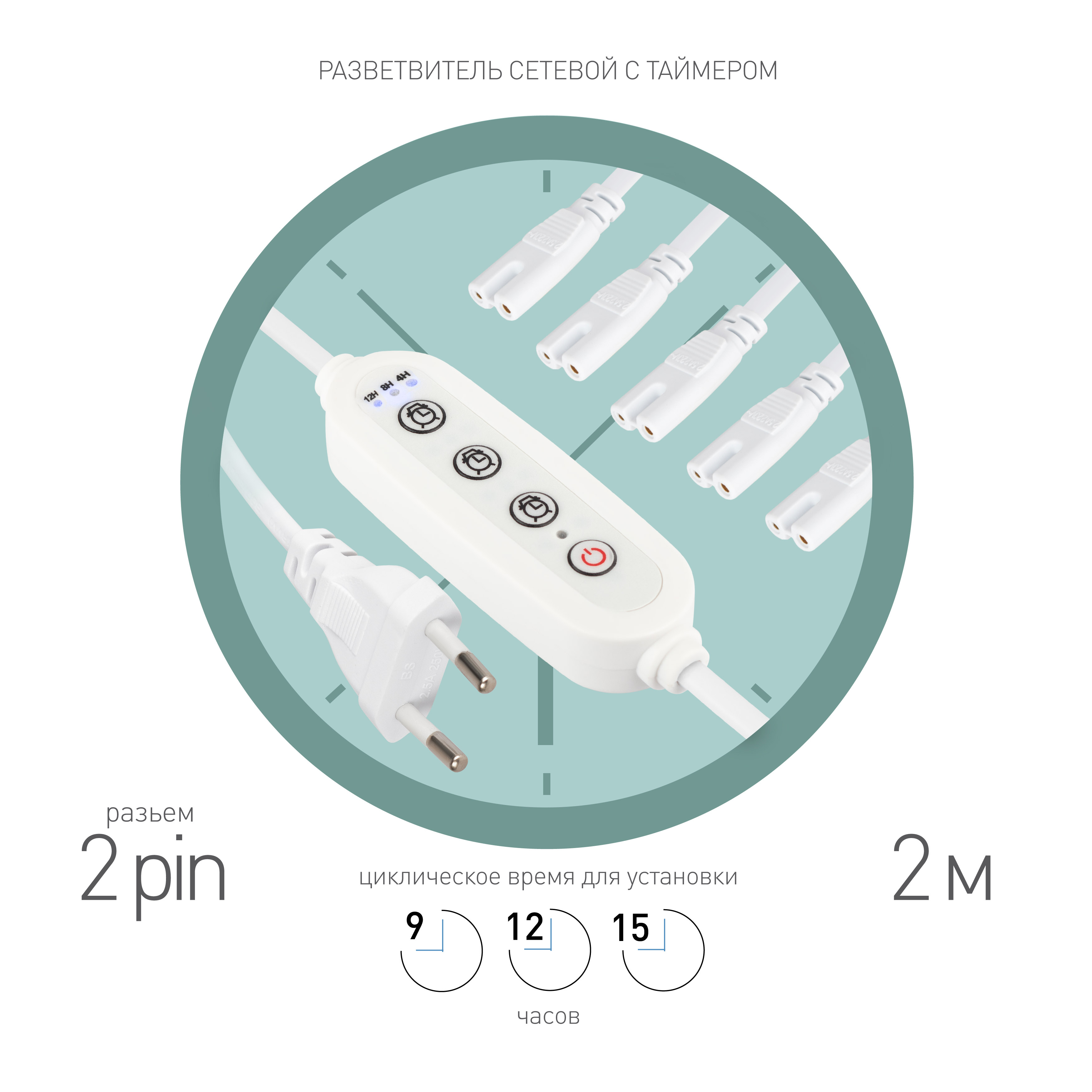 Эргономичное решение для подключения к электросети до пяти светильников сразу. Разветвитель ЭРА с таймером подходит для светильников серий ЭРА FITO Т5-N и ЭРА Т5-Ra90 с коннектором 2-pin. Универсальный разветвитель для подключения линейных светильников отличается оптимальной длиной — 2 метра. Выполнен в базовом белом цвете, подходящем для любого интерьера. Провод изготовлен из качественных материалов, отвечающих высоким требованиям электробезопасности.Технические характеристики: таймер времени, двойной штекер IEC 60320 C7, кабель 2х0,5 мм2, ПВС; для устройств II класса электробезопасности, без заземления; выдерживает нагрузку до 150 Вт. С помощью нового сетевого разветвителя от торговой марки ЭРА можно быстро и легко организовать комплексное освещение для большой площади. Одна розетка — и сразу 5 светильников.