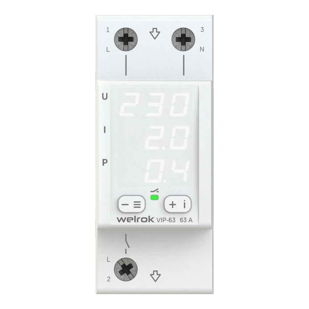 Многофункциональное реле Welrok VIP защищает оборудование от скачков и провалов напряжения, последствий обрыва нулевого провода и превышения тока или полной мощности. Реле отключает нагрузку, если напряжение, ток или мощность выходит за установленные пределы и автоматически включает нагрузку, когда значение параметра вернется в норму.