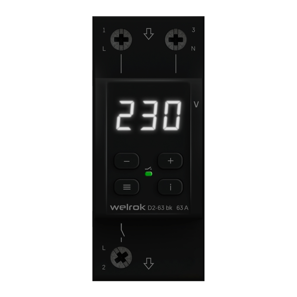 Реле напряжения Welrok D2 bk защищает оборудование от скачков и провалов напряжения, обрыва нулевого провода. Реле отключает нагрузку, если сетевое напряжение выходит за установленные пределы. Когда значение напряжения вернется в норму, нагрузка будет автоматически включена обратно.Гарантия 10 лет