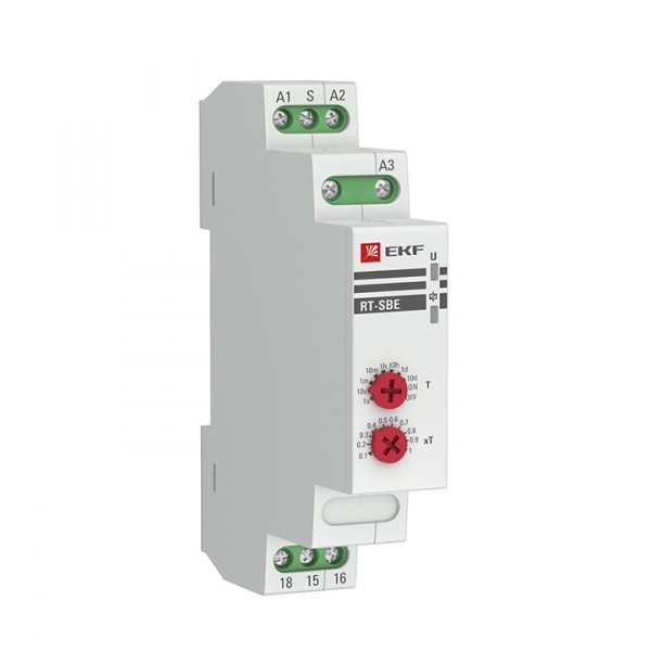 Реле времени RT-2C EKF PROxima является электронным коммутационным аппаратом с регулируемой установкой времени. Реле предназначено для создания циклической работы схемы с задержкой на включение. Переключение диапазонов времени производится с помощью поворотных регуляторов, расположенных на лицевой поверхности реле. Реле применяется в системах промышленной и бытовой автоматики: в вентиляционных, отопительных, осветительных. Категория применения – АС-15 (управление электромагнитами мощностью свыше 72 Вт). Многофункциональное реле времени RT-10 EKF PROxima является электронным коммутационным аппаратом с регулируемыми режимами работы и регулируемой установкой времени. Реле предназначено для включения или отключения нагрузки по заданным временным величинам и режимам работы. Переключение диапазонов времени и режимов работы производится с помощью поворотных регуляторов расположенных на лицевой поверхности реле. Реле применяется в системах промышленной и бытовой автоматики: в вентиляционных, отопительных, осветительных системах. Категория применения – АС-15 (управление электромагнитами мощностью свыше 72 Вт). Реле времени RT-SBA EKF PROxima является электронным коммутационным аппаратом с регулируемой установкой времени. Реле предназначено для включения нагрузки с задержкой времени включения. Переключение диапазона времени производится с помощью поворотного регулятора, расположенного на лицевой поверхности реле. Реле применяется в системах промышленной и бытовой автоматики: в вентиляционных, отопительных, осветительных системах. Категория применения – АС-15 (управление электромагнитами мощностью свыше 72 Вт).