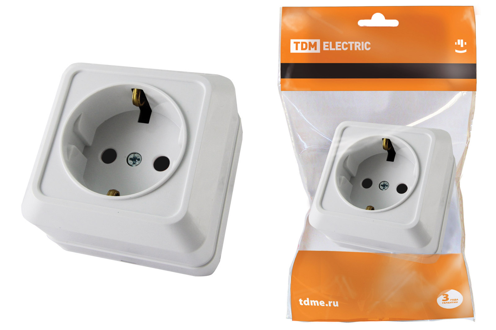 Розетка 1-мест. в сборе с корпусом с З/К откр. уст-ки16А 250В IP20 белый TDM "Ладога"