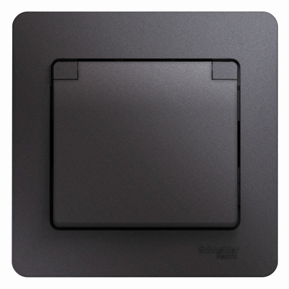 Розетка Systeme Electric (ранее Schneider Electric) серии Glossa (в сборе, цвет графит) одинарная с заземлением, шторками и крышкой подходит для сетей 250 В, на ток 16 А.- Заземляющий контакт обеспечивает дополнительную защиту от удара электрическим током. При наличии заземления электрический потенциал уходит в землю, защищая человека.