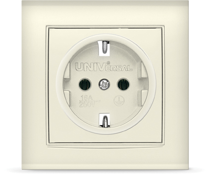 Розетка 1-местная 16А 220В с/з скрытая установка слоновая кость UNIVersal Бриллиант /100