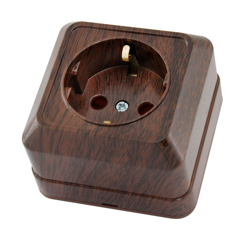 Розетка 1-местная 2П+З IP20 16А открытой установки бук TDM Ладога