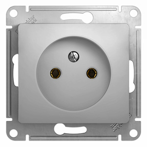 Механизм Systeme Electric (ранее Schneider Electric) серии Glossa (цвет алюминий) розетки одинарной без заземления и без шторок подходит для сетей 250 В, на ток 16 А. Выполнен из материала PС+ASA, стойкого к УФ-излучению и появлению царапин. Эргономичные клеммы розеток расположены в один ряд.
