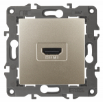 Розетка HDMI серии Эра Elegance цвет шампань 14-3114-04. Рамки приобретаются отдельно. Рамки Эра Elegance ПЛАСТИК: 1 пост 14-5001-хх, 2 поста 14-5002-хх, 3 поста 14-5003-хх, 4 поста 14-5004-хх, 5 постов 14-5005-хх; СТЕКЛО: 1 пост 14-5101-хх, 2 поста 14-5102-хх, 3 поста 14-5103-хх, 4 поста 14-5104-хх; МЕТАЛЛ: 1 пост 14-5201-хх, 2 поста 14-5202-хх, 3 поста 14-5203-хх, 4 поста 14-5204-хх; ДЕРЕВО: 1 пост 14-5301-хх, 2 поста 14-5302-хх, 3 поста 14-5303-хх, 4 поста 14-5304-хх (хх - код цвета: 00-прозрачный, 01-белый, белёный дуб, 02-слоновая кость, 03-алюминий, 04-шампань, 05-чёрный, чёрное дерево, 07-ясень, 09-дуб, 10-венге, 11-клён, 14-медь, 21-жёлтый, 22-оранжевый, 23-красный, 25-бордо, 26-лайм, 27-зелёный, 28-голубой, 29-синий, 30-розовый, 31-мокко, 32-серый, 41-сталь, 42-титан).