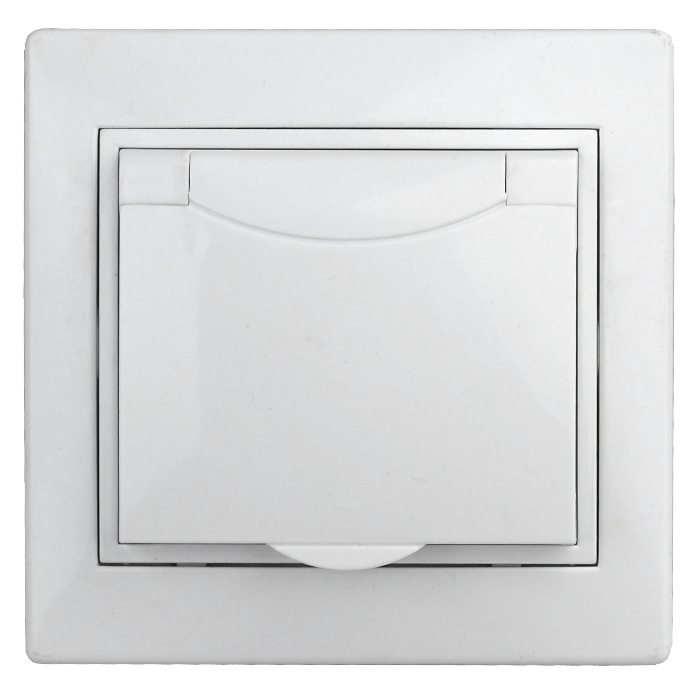 Розетка 2P+E Schuko с крышкой, 16А-250В, СУ, б.л., Plano, белый