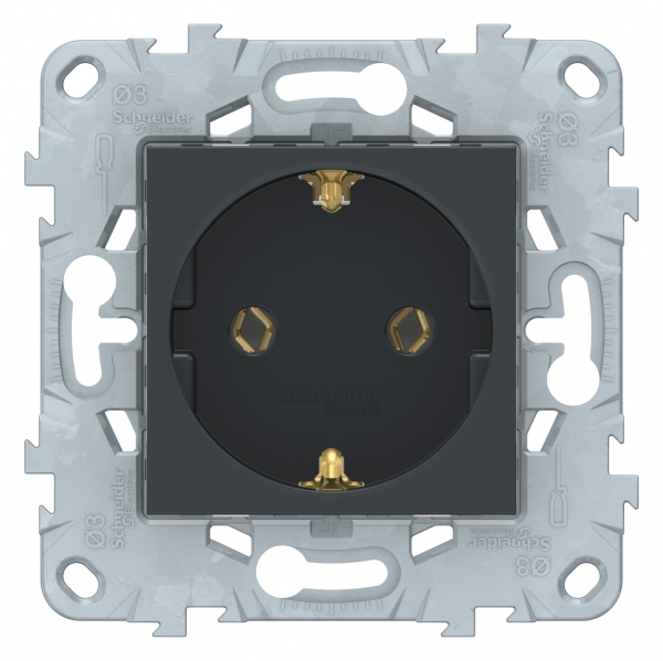 Розетка Schneider Electric UNICA NEW (антрацит) с заземлением, без шторок, с винтовыми зажимами предназначена для сетей до 250 В на ток до 16 А.- Привлекательный внешний вид.