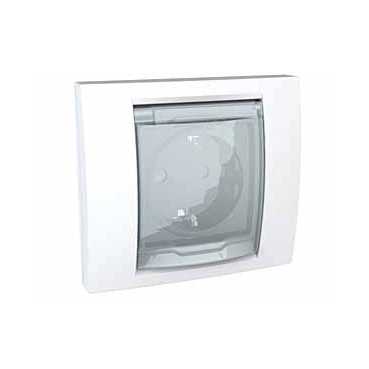 Розетка Schneider Electric UNICA (бежевый) без заземления, со шторками, с крышкой и рамкой предназначена для сетей до 250 В на ток до 16 А.-Идеально подходит для ванной комнаты.