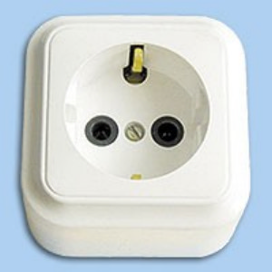 Розетка 1-местная с/з открытая установка белая РА16-254 ПРАЛЕСКА 80/108