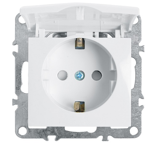Розетка 1-местная с/з с крышкой (механизм) белый 250В, 16А с защ. шторкой,STEKKER серия Эрна